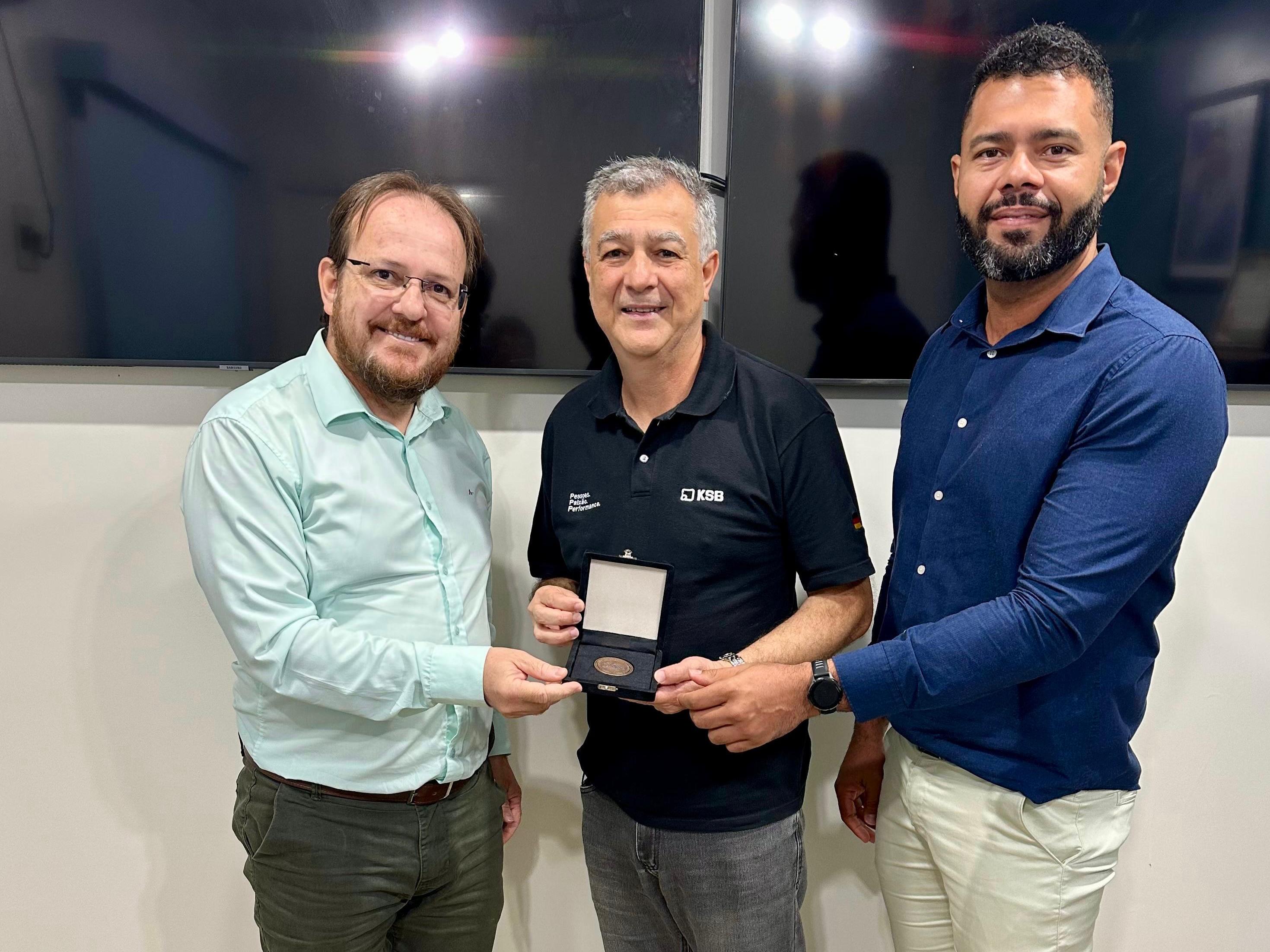 Na ocasião, em reconhecimento à parceria institucional e à contribuição para o setor de saneamento, Udson Alves Barreto foi agraciado com a Moeda Institucional da CAERD, categoria Bronze.