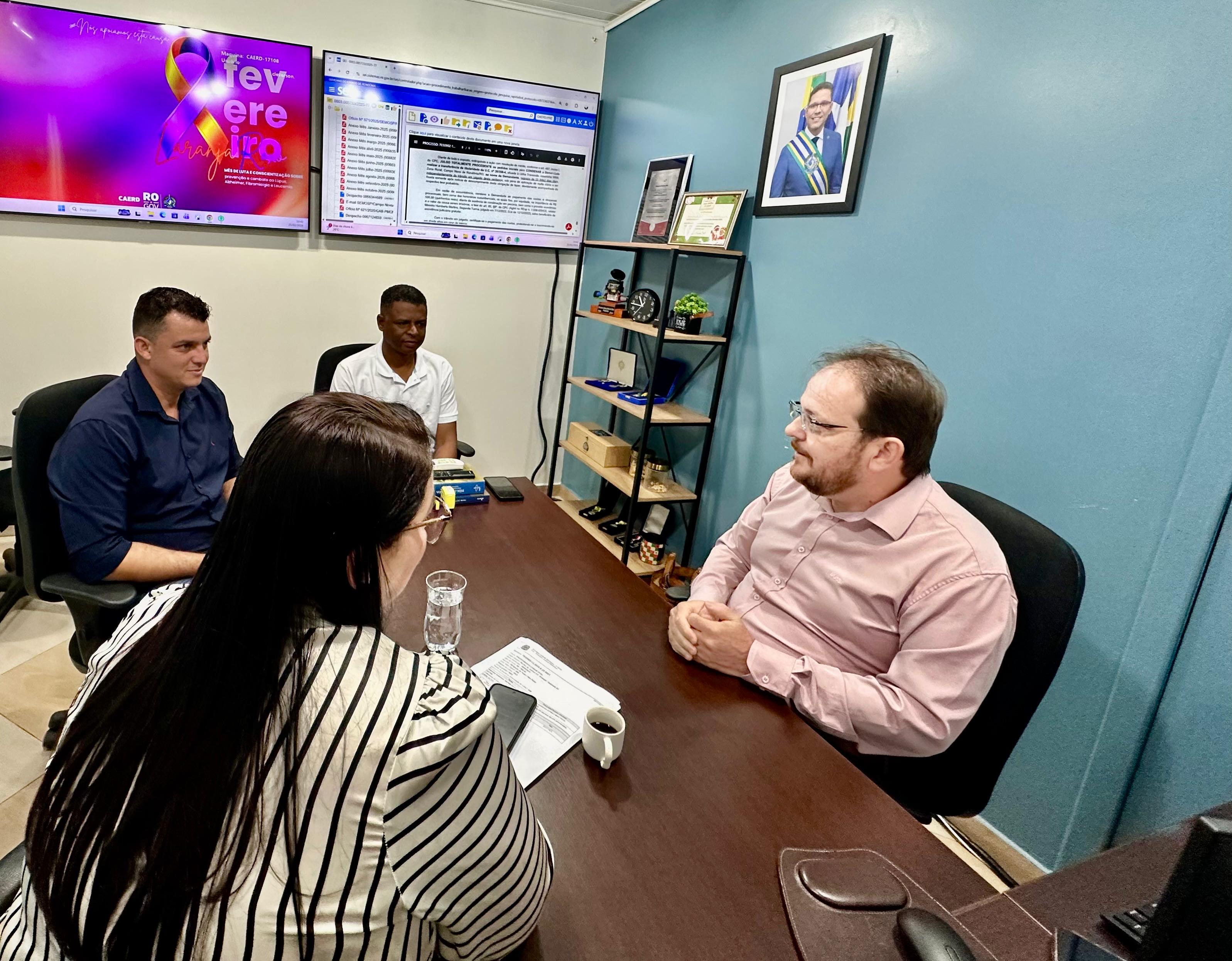 O presidente da Companhia de Águas e Esgotos de Rondônia (CAERD), Cleverson Brancalhão, recebeu, em visita institucional, o prefeito interino de Campo Novo de Rondônia, Adeilson Corrêa, na sede da Companhia.