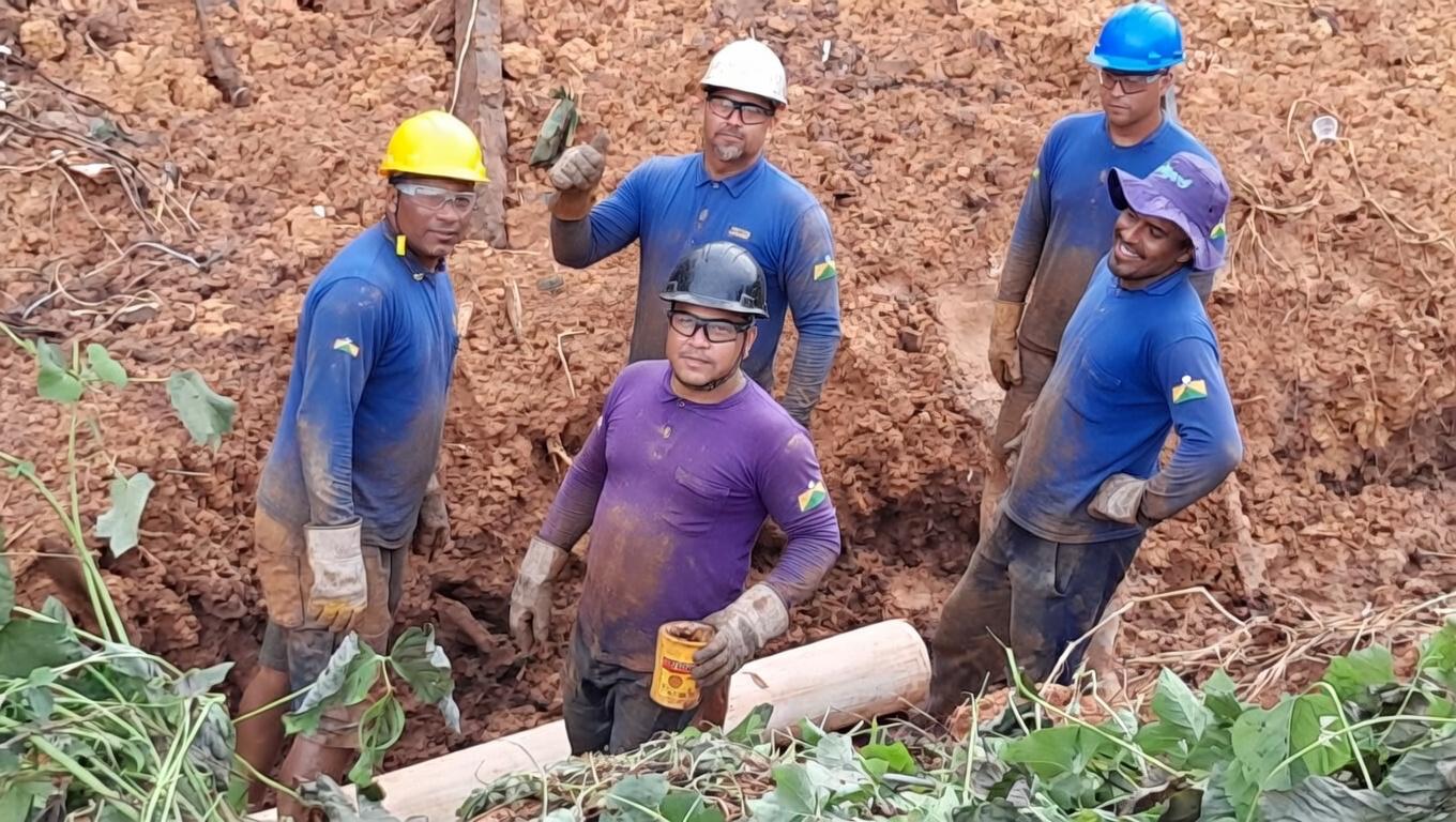 Equipe da CAERD de Nova Mamoré executando substituição da rede hidráulica - (Foto: José Auri)